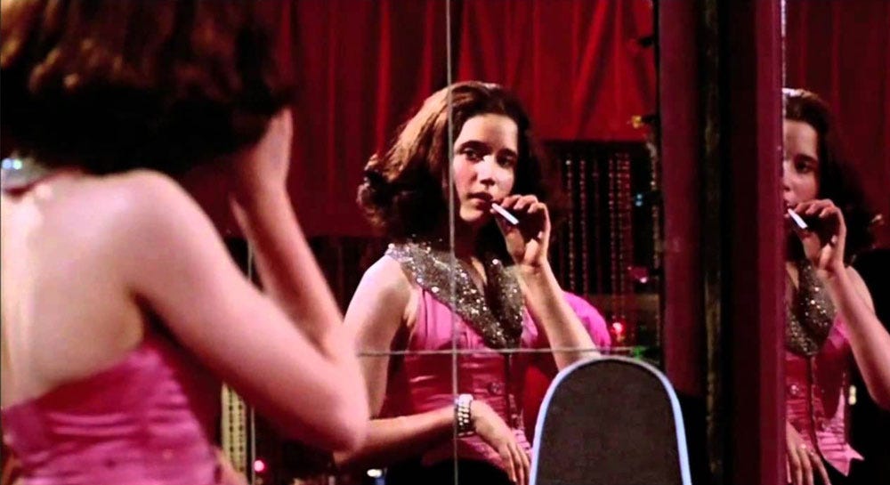 As is true in other teen films, adult denizens of the bar’s alternative subculture assist the underage girls in their emancipation, providing access to inappropriate spaces and activities so the teens can support themselves while evading their parents and the law.